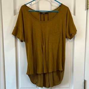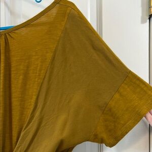 Anthropologie Amadi Brown Scoop Neck Short Sleeve Contrast Back Blouse - Size Medium