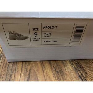 Women's Cushionaire Apolo-T Knit Sneakers feature a rubber sole, adjustable laces, and a premium memory foam insole. Available in taupe, size 9 US, and brand new in box.