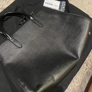 This stylish black tote bag is perfect for any occasion. Its sleek design and versatile color make it a must-have accessory.