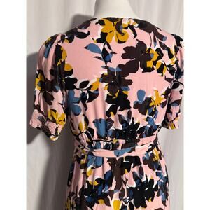 Motherhood Maternity Pink Floral Wrap Maxi Dress Size S Short Sleeve Belted