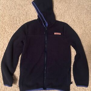 Soft navy blue fleece jacket with a blue trim. Features a front zipper and Vineyard Vines logo patch.