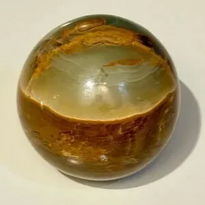 VINTAGE Natural Polished Stone Paperweight. Browns, Greens. Flat Bottom. 3.5”