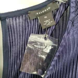 HALOGEN Navy Long Sleeve Plissé Jumpsuit balloon sleeve ruffled Medium