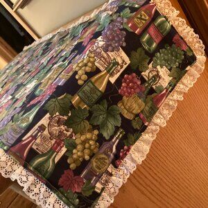 Buffet Scarf Table Runner Reversible Patterns Wine Bottles, Grapes & Leaves