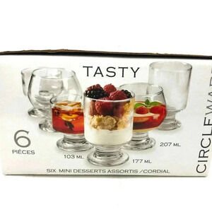 NIB 6 PC Mini Dessert Glass Serving Cups Assorted Size Gift Party Short