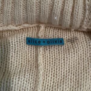 New with tags Gorgeous and Timeless Alice and Olivia Colby Sequin Cascade Layering Cardigan Sweater in a Chunky Open Knit. Oversized Weekend Layering Cardigan with Shawl Collar and Long Sleeves. Gorgeous and ultra soft wool, mohair, and cashmere blend sweater with small iridescent sequins sewn throughout creates a fabulous shimmer effect in certain lights and in photographs. Women's Size XS.