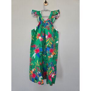 crewcuts tropical dress, jcrew girls dress, floral ruffle dress, green summer dress, girls vacation dress, kids party dress, NWT crewcuts, size 10 girls dress, bright clover dress, girls cotton dress, jcrew resort kidswear