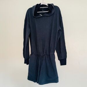 Athletic loungewear athleisure comfy romper one piece onesie comfy playsuit loungewear cotton blend, attached hood, long cuffed sleeves cold weather winter summer spring fall autumn all weather casual fun weekend beach errands go-to casual funky fun stylish all-in-one