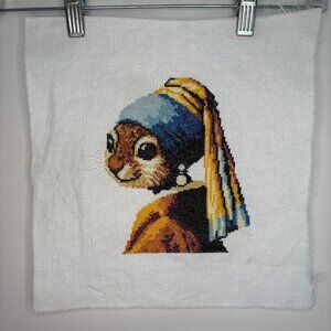 Girl with a Pearl Earring Handmade Crossstitch Complete Artwork Frameable Cat
