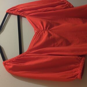 H&M Vibrant Orange Linen Blend Puff Short Sleeve Top Blouse- S
