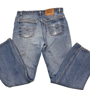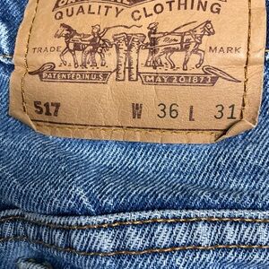 Vintage Levi’s 517 Orange tab boot cut medium wash jeans. Made in the USA. Button/zip enclosure. Tagged as a 36x31, measures as a 33 x 29. 16.5 inches across the waist, 20 inches across the hips, 29 inch inseam, 8 1/2 inch ankle opening. Has some light distress and discoloration throughout as shown in photos. Smoke and pet free home. 🇺🇸