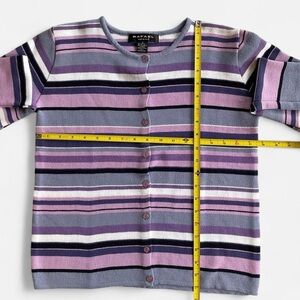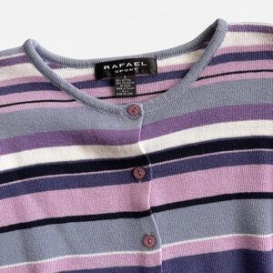 Vintage Rafael Sport Purple Striped Button Front Long Sleeve Cardigan