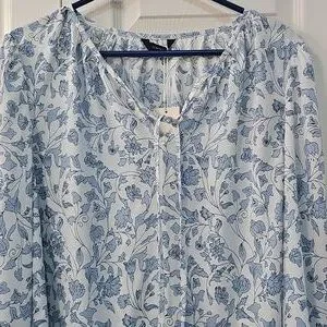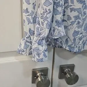 Dokotoo Floral Blue Blouse Top Size Large Worn 1 Time