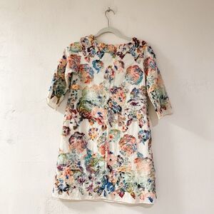 SO cute and NEW from Charabia, sold at Barney’s! Mini shift dress in white with embroidered multicolored floral design.