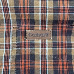 Keywords: Carhartt, men's shirt, long sleeve, button up, plaid, brown, orange, XL Tall, casual, workwear, vintage, 2007, cotton shirt, spring, tall size