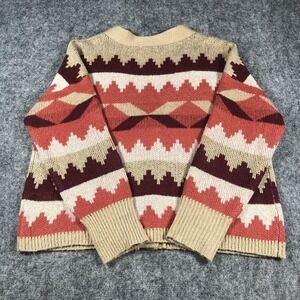 C&C California Cardigan Sweater Womens Medium Beige Multi Aztec Button Front