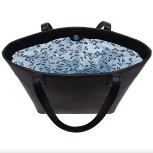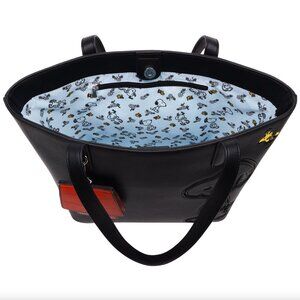 Inside, the tote has a roomy main compartment with a Peanuts character print lining, back zip pocket, and two front slip pockets to keep your belongings organized and easy to access.