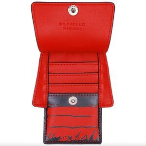 Includes a removable doghouse-shaped red cardholder with a clear ID slot on the back, four interior card slots, and button flap closure for quick access to cards, cash, and essentials on the go.