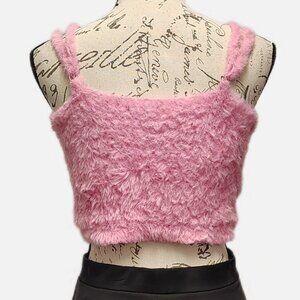 Womens Pink Fuzzy Crop Top Medium Spaghetti Straps - Y2K, Fairy, Coquette, Egirl, Alternative, Romantic, Balletcore, Cozycore, Loungewear, Cutecore, Kawaii
