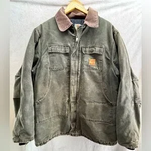 Vintage Carhartt Men's Sandstone Black Quilt Lined Gray Jacket Size XL