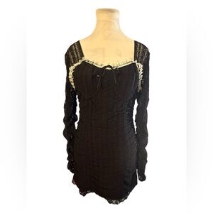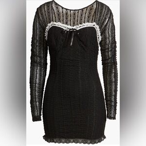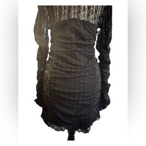 Chic black lace dress with long sleeves. Delicate lace detailing. Perfect for elegant occasions.