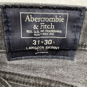 This Abercrombie & Fitch men's jean in size 31x30 features a black color with a skinny fit. The Langdon style offers a straight cut design, suitable for a regular size type. Although it is pre-owned and may have some spots, it remains a trendy option for a stylish look.
