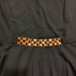 Black sleeveless Peplum Tank Top with Rose Gold Chain design at waist. Stretchy material.