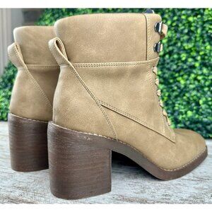 Condition: NWOB (please see photos for exact condition) Flaws: None visible; soles and uppers show no wear Features/Accents: Soft flannel lining • Functional side zipper • Metal eyelets with lace hooks • Pull tab at heel • Stacked block heel Material: Faux leather upper • Textile lining • Synthetic outsole Theme/Style: Combat Inspired • Urban Casual • Fall Fashion • Weekend Ready • Edgy Chic Thanks for looking! Ships fast & packed with care.