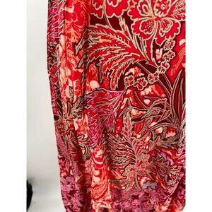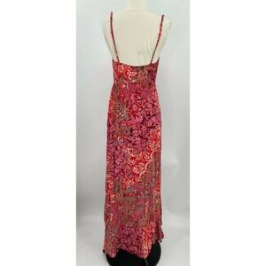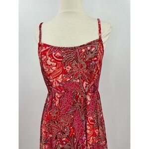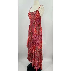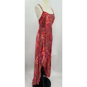 Make a statement in this boldly printed maxi slip featuring a ruffled hemline with a slit up the side and smocked details at the bust.