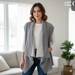 Stay cozy and stylish with this elegant gray sleeveless sweater. Cascade style. Perfect for layering and adding a touch of sophistication to any outfit.