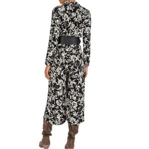 ba&sh Lonik Lady Jumpsuit Long Sleeve Floral Wide Leg Viscose Black Cream 4