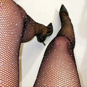 Boutique item! Comes brand new in packaging. Black fishnet stockings with rhinestone crystal accents. Super sexy and fun. Wear with a dress or miniskirt, or underneath ripped jeans. One size Fits height 5’1-5’6” with weight 100-145 best. No brand but similar to the one tagged