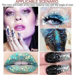 【Multiple Uses】 Delicate glitter powder, multi-purpose in one bottle, can be used for face, eye, lip, body, hair, collarbone decoration, instantly adding charming charm to you. Can be used for all kinds of holiday parties, everyday makeup. Suitable for use in weddings, halloween, bars, parties, shows.
