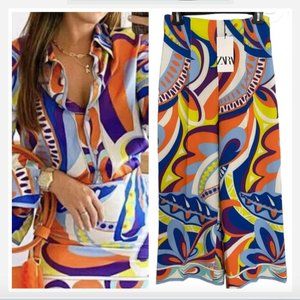 ZARA CO-ORD PUCCI MULTI PRINT HIGH RISE TROUSERS