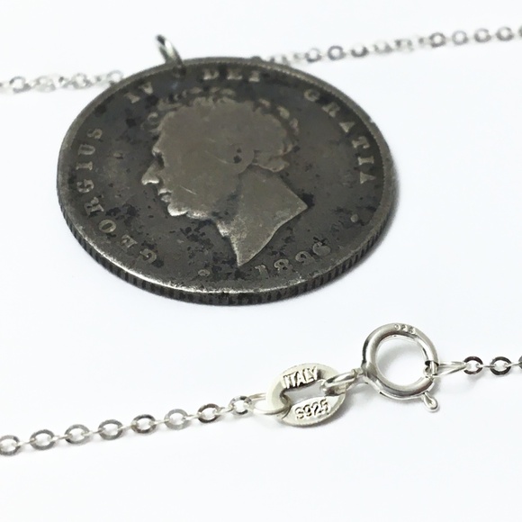 Antique 1826 Sterling Coin Necklace — 925 Sterling Silver Chain (18-inch) Italy