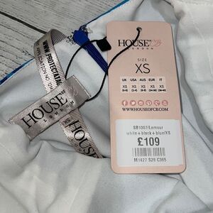 NEW House Of CB Lamour White Printed Stretch Pencil Dress White Black Blue sz XS