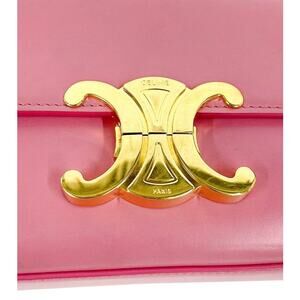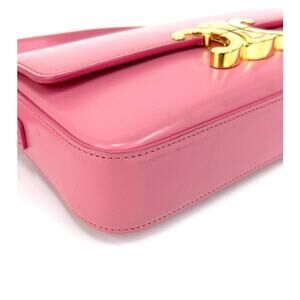 description: Celine pink triope shoulder bag. condition The bag shows signs of use including light scuffing inside and out, but no visible leather damage. body - Good overall with no noticeable leather damage except for minor scuffs (lock has life scratches.) Interior - Good with minor scuffs. corners - with minor scuffs. bottom - Minor scuffing. handles and strap - Good with minor signs of use. Made in Italy / Cereal engraving inside. bag sizing policy Please note that due to the location, method, material and design of the bag, there may be a 1-3 cm error. please be careful not to use liquids containing alcoholic chemicals, such as perfume or hand sanitizer, as they may deteriorate the leather. vigorous scrubbing of the bag with leather cleaners can remove the dye, even if the bag is not dyed, so please avoid using cleaners as much as possible. regardless of whether the pendant leather is dyed or not, please be aware that it may become sticky when stored in hot and humid places, such as in a hot car in summer or near heating appliances in winter. due to the nature of pendant leather, it may become dyed if it is left in contact with other products for a long time, so be sure to store it individually in a dust bag. Please note that Elabutique is not responsible for any damage caused by improper care.