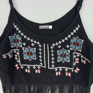 Earthbound Trading Co Crop Top Women Large Black Embroidered Fringe Boho Western