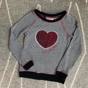 Juicy Couture Black & White Houndstooth Sweater w/ Hot Pink Sequin Heart Size 5