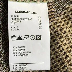 Anthropologie Aldomartins Tropical Knit Dress NWOT multi-colored abstract patterned of Gold, pink, light blue, dark blue, green. This dress is Very comfortable. It has a FLAW of a snag in pic #4