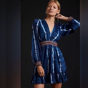 Anthropologie Verb by Pallavi Singhee Beaded Tie-Dye Mini Dress