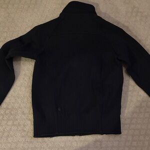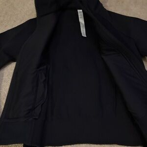 Chic black jacket with a modern zip-up style. Ideal for versatile wear.