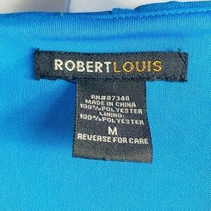 Elevate your wardrobe with this stunning Robert Louis dress. The blue with white and black floral print paired with the ruffled V-neckline and faux wrap design creates a feminine and elegant look. The dress features 3/4 ruched sleeves, an asymmetric hem, and a belted waist for a flattering fit.