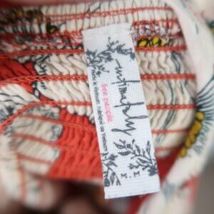 Chic midi dress with floral pattern. Features a square neckline smocked bodice and spaghetti straps. Flattering handkerchief hem. Perfect sundress or for fall layering
