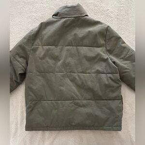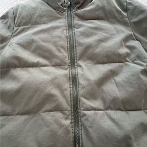 John Galt Olive Green Puffer Jacket, size small. Stylish olive green puffer jacket with a zip-up front. Perfect for chilly days.