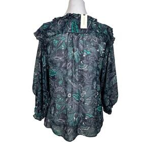 🆕 Anthropologie Haida Pleasant Top Navy Teal Ruffled NWT Size S Romantic Boho