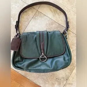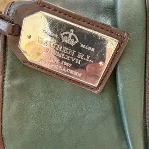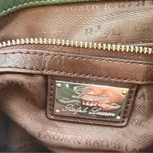 LAUREN RALPH LAUREN vintage olive, green and brown, leather handbag preowned