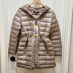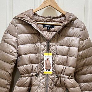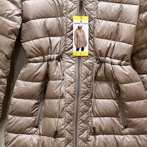 Kenneth Cole Women's Quilted Anorak Puffer Jacket Size S Tan Lightweight (NEW)