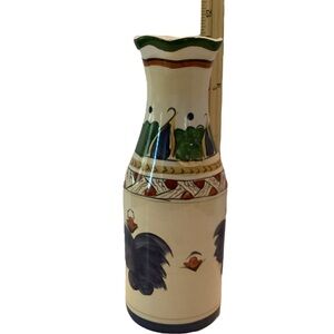 The Boulevard Tabletops Unlimited Vase Wine Carafe Decanter Vase Pitcher is a ceramic pitcher with a multicolor design, standing at 11 inches tall. It is microwave and dishwasher safe, making it convenient for everyday use in the kitchen or dining area. Perfect for serving wine or any other type of beverage, this pitcher adds a touch of elegance to any table setting. It could also be used as a beautiful vase.