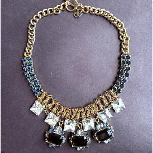 Vintage Anne Taylor Chunky Gold Tone Necklace Blue Rhinestone Bib Statement Formal